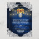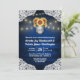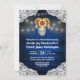 Sonnenblumen Mason Jar Probe Dinner Einladungen - mit einem königlichen oder blauen Stallholz Hintergrund bestickt mit Spitzen und mit warmen Streichelleuchten dekoriert. Das Design umfasst auch einen Blumenstrauß in einem Glaskeramikglas, mit dem Sie die Initialen Ihrer Wahl anpassen können. Die Rückseite hat auch den gleichen rustikalen Hintergrund, um die Vorderseite.