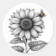 Sonnenblume mit Beerenschwarz-Weiß-Aufkleber-Siege Runder Aufkleber