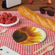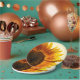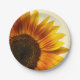 Eine Herbstsonnenblume mit Streifen des Rotes in den gelben Blumenblättern. Sonnenblumen symbolisieren Langlebigkeit, Loyalität und Verehrung. Dieser PapierTeller ist völlig kundengerecht.