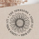 Rücksendeadresse Gummi Briefmarke mit einer schönen Sonnenblume und Ihrem Namen und Ihrer Adresse rund um die Blume.