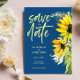 Diese Save the Date Einladung basiert nur auf klassisch blauen Hintergrund und Sonnenblumen, vielleicht perfekt auf Ihre Wünsche abgestimmt. Wenn Sie eine Einladung mögen, bereichert mit dem interessanten Schriftart, dann ist das für Sie perfekt.