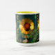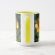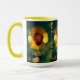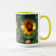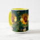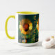 Eine schöne Tasse, die Ihren Tag angenehm gestalten wird. Sehr einzigartiges Design mit einem gedruckten Bild eines Acrylgemäldes einer Sonnenblume, die im Sonnenlicht leuchtet.
