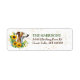Die links Seite dieser Rücksendeadressen-Aufkleber zeigt ein wunderschönes Bild eines braunen und weißen Greyhound-Hunde-Portraits in einer hellen Sonnenblume und einem grünen Blattkranz. Subtile goldene Konfetti verleiht dem Hintergrund Interesse. Ihr eigener Text ist rechts grün und dunkelbraun.