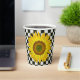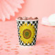 Der hochwertige Papier-Becher zeichnet sich durch eine fröhliche, gigantische, hellgelbe Sonnenblume aus, die auf einem Imitat-gesteppten, schwarz-weißen Schachbrettmuster-Hintergrund steht. Ideal für Innen- oder Außenunterhaltung und für jeden Anlass! Siehe koordinierende Produkte.