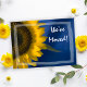 Geben Sie Ihre neue Adresse und Telefonnummer an, nachdem Sie mit der hübschen Sonnenblume auf der Blue Change of Address Postcard auf Ihre neue Zuhause umziehen oder auf diese umziehen. Passen Sie es mit all Ihren neuen Kontaktinformationen, Adresse, Telefonnummer, E-Mail-Adresse und Namen auf der Rückseite an. Diese fröhliche, individuelle, florenträchtige Ankündigung auf der Postkarte ist mit einem digital verbesserten botanischen Foto einer Sonnenblumenblüte auf blauem Hintergrund ausgestattet.