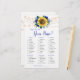 Diese Brautparty-Spielkarte ist Was ist in deiner Handtasche? Das Design umfasst Sonnenblumen in Aquarelltönen und Blume in blauer Rose mit Blattwerk und Lichtern. Personalisieren Sie die Rückseite der Karten mit dem Namen der Braut. Matching-Produkte verfügbar.