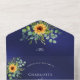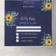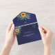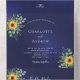 Marineblau mit Sonnenblumen und Eukalyptusgrün. Die blaue Farbe ist ungleichmäßig. Personalisieren und fügen Sie Ihre Namen, Monogramm und Hochzeitsdetails.