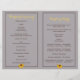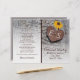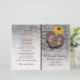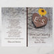 Sonnenblumen, metallisches rostes Herz mit Monogramm auf Holz rustikale Hochzeitsfeier und gefaltetes Party mit einem braunen rosteten Metallherz mit Initialen auf verwittertem grauem Holzbrett und drei gelben Sonnenblumen. Dieses mit Monogramm Blumenmuster-Design ist vollständig anpassbar und ist Teil eines Hochzeitsgeschehens oder einer Hochzeitskollektion, die perfekt für eine Hochzeitsfeier im Sommer oder Herbst ist. Man muss es in der Mitte falten. Wählen Sie nur diesen Papierwert aus, da er sich gut faltet.
