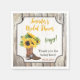 Diese rustikalen Brautparty-Servietten passen zu der im Folgenden gezeigten Brautduscheinkollektion und verfügen über einen Aquarellbouquet aus Sonnenblumen in einem braunen Cowboy-Stiefel auf der unteren links Seite mit einem weißen und braunen, ticketförmigen Overlay auf einem rustikalen Holzkornmuster-Hintergrund. Die anpassbaren Worte "Jennifers Brautparty" sind in sonnengelbem Gold auf der Oberseite der Servietten mit dem Wort "Enjoy!" rechts neben dem Cowboy-Stiefel in Grün und schräg gedruckt. Der individuell anpassbare braune Text rechts unten im Cowboy sagt: "Danke, dass du hier bist!" mit dem Datum in hellbraun unten. Diese würden neben Ihrem Bridal- oder Polterabend-Kuchen, Leckereien oder Getränken fabelhaft aussehen.