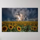 Ein Feld von gelben Sonnenblumen in einem Sommer Blitzstürm.