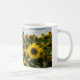 Blumenfeld. Schönes Feld von Sonnenblumen mit polarisierenden Wolken