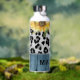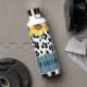 Sonnenblumen Leopard Print Rustic Chic Name Insulated Water Flasche zeigt gelbe Sonnenblumen mit Grün auf einem Leopardenprint auf einem rustikalen Holzboden und personalisiert mit Ihrem Namen. Entworfen von © Evco Studio www.zazzle.com/store/evcostudio