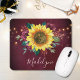 Diese personalisierte Maus-Matte zeichnet sich durch ein floralfarbenes Aquarell-Design mit Sonnenblumen, bordeauxfarbenen Rose und Blattwerk mit Lichtern aus. Personalisieren Sie es mit einem oder mehreren Initialen.