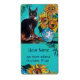 Ausdrucksstarke, skurrile Schwarzkatze, farbenfrohe Sonnenblumen und grüne Blätter in Gelb- und Türkisblau. Künstlerisches und lebendiges Original-Acrylgemälde auf Holzplatte von Bulgan Lumini (c)