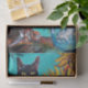 SONNENBLUMEN MIT SCHWARZER KATZE IN BLAUEM TURQUOI SEIDENPAPIER