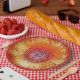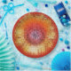 Eine schöne Sommersonnenblume abstraktes Mosaik-Design mit orangefarbenem Hintergrund.