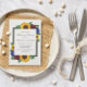 Das Design besticht durch elegante Sonnenblumen, Rose und Wildblumen mit einer goldgelben, bordeauxfarbenen und blauen Farbpalette. Das Design verfügt auch über einen kohlegrauen Rahmen. Sie können die Hintergrundfarbe auf der Vorderseite und zurück in die gewünschte Farbe ändern oder beide Set in Weiß verlassen werden.