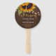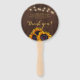 Elegante rustikale Hochzeitsgunst danken dem Rundfächer, der mit wunderschönen, hellgelben und orangefarbenen Sonnenblumenbouquets, Streichern aus bunten Lichtern und einem schicken Imitat mit Goldkalligraphie auf dunkelbraunem Holzhintergrund besticht. +++++++++++++++++++++++++ Geeignet für schicke rustikale Länder | Bauernhof | Sommergarten Hütte | Herbst Herbst Nacht Hochzeiten im Freien.
