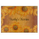 Schöne Sonnenblumen der dieses Ausrüstungsbeschreibungen. Dieses Schneidebrett ist für die Küche mit einem Sonnenblumethema groß. Der TEXT kann mit Ihrem eigenen Namen oder Sprichwort besonders angefertigt werden.