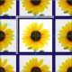 Eine wilde Sonnenblume in voller Blüte umrissen in königsblau.