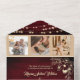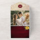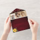 Feiern Sie Ihre Liebe inmitten von rustikalem Charme mit unserer botanisch-inspirierten Alleinheiratseinladung! Dieses Design aus rustikalem Bordeaux-Holz strahlt Wärme und Eleganz aus. Verziert mit kichen Saitenlichtern und Vintagen goldgelben, blumigen Akzenten, Set der perfekte Ton für Ihren besonderen Tag. Personalisieren Sie es mit vier hochgeschätzten Fotos des glücklichen Paares, die Ihre Reise wunderbar zusammen erfassen. Vereinfachen Sie RSVPs und tauschen Sie zusätzliche Informationen mühelos mit unserer enthaltenen Website und QR-Code aus. Lass deine Liebe mit dieser bezaubernden Mischung aus botanischer Schönheit und rustikaler Anziehungskraft.