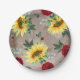 Sonnenblumen und Burgunder Rote Rosen Rustikaler F Pappteller