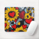 Dieses lebendige Wandgemälde zeichnet sich durch eine bunte Mischung aus Sonnenblumen und Herzen aus. Die Sonnenblumen sind mit hellgelben Blütenblättern und roten Zentren geschmückt, während die Herzen in verschiedenen Rottönen auf den Bildern verteilt sind. Der Hintergrund ist eine Mischung aus abstrakten geometrischen Mustern und Texturen, die einen dynamischen und auffälligen Kontrast schaffen. Das Gesamtthema vermittelt Liebe und Positivität, wobei die Sonnenblumen das Glück symbolisieren und die Herzen die Zuneigung darstellen.