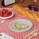 Teller mit Holzstruktur, Sonnenblumen und Hirschgewächsen