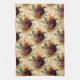 Ein reich detailliertes Muster goldener Sonnenblumen, brauner Ranunculus, grüne Farnfronten, pussy Weidenfäden auf einem monochromen, damasken Hintergrund
