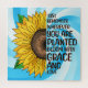 Hübsche gelbe, von Hand gezeichnete Sonnenblume mit farbenprächtigem Hintergrund. Inspirationssatz. Denken Sie nur daran, wo immer Sie gepflanzt sind, um mit Liebe und Gnade zu blühen.