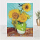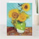 Sonnenblumen (1888) Vincent van Gogh. Stilles Leben auf blauem Hintergrund. Ein heller Blumenstrauß steht in einer Vase. Reproduktion berühmter Kunstbilder im öffentlichen Bereich.