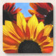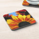 Dieses Set von Kork-Untersetzer bringt Helligkeit und Fröhlichkeit in Ihr Leben! Drei leuchtend farbige Sonnenblumen werden durch das Sonnenlicht, das durch die Blütenblätter strömt, beleuchtet. Die Blume sind mit einer prächtigen goldfarbenen, gelben, orangefarbenen, roten und braunen Farbpalette versehen. Der blaue Himmel vervollständigt dieses abstrakte Farb- und Formmuster.