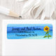 Happy gelbe Sonnenblume, mit blauem Hintergrund, Rücksendetikett