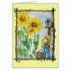 Original Aquarellmalerei von Sandra Gale mit einer Gruppe von Sonnenblumen und einer Gartentasche, Hut und Schaufel. Großartiges Design für Gärtner aller Art und ein perfektes Bild des Sommers!