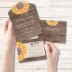 Sonnenblumen machen Freude! Mit dieser rustikalen Sonnenblume laden Familie und Freunde zu einem besonderen Tag ein. Es ist mit Sonnenblumen in Gelbtönen mit braunem Holzfußboden dekoriert. Weil wir unsere eigenen Kunstwerke erstellen, werden Sie diese exakte Sonnenblume von anderen Designern nicht finden. Original Wasserfarbe © Michele Davies.