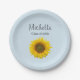 Klasse der 2025 Graduierungsparty Papierteller mit einer gelben Sonnenblume auf einem hellblauen Hintergrund. Schwarze Typografie-Schriften können mit Ihrem eigenen Text angepasst werden. Ideal, um mit Ihrem Lieblingsschüler zu feiern.