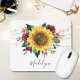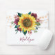 Diese personalisierte Mouse-Matte zeichnet sich durch ein floralfarbenes Aquarell-Design mit rustikaler Sonnenblume, bordeauxfarbenen Blume und Laub mit Saitenleuchten aus. Personalisieren Sie es mit einem oder mehreren Initialen.