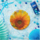 Eine elegante Sonnenblume auf einem Papierteller.
