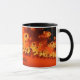 Eine orange Sonne stößt brennende Spiralen in dieser Fraktalgrafik aus. Es gibt Raum für einen Namen in der Mitte der Tasse.