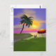 Postcard mit meinem Kunstwerk einer tropischen Insel-Szene mit einem Schirm und Beachball.