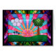Ein digitales Buntglasdesign im Art-Déco-Stil, das im 20. Jahrhundert beliebt war. Das weithin verwendete Sonnenburstmotiv ist zentral und erhebt sich hinter einer grünen Landschaft, die von einem Baum auf der einen Seite und Wolken und Blume auf der anderen Seite ausgeglichen wird. Geometrische Formen werden verwendet, um die Symmetrie der Szene zu betonen, wobei der Baum und die Wolken aus überlappenden Kreisen bestehen. Verschiedene farbenfrohe Fraktal verleihen der "gläsernen" Textur und dem Interesse. Die Szene ist gerahmt in schwarzen Eisenarbeiten und diamantförmigen Blöcken, mattiert mit dunklen, aber lebendigen Fraktal-Mustern.
