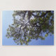 Ein schöner blauer Himmel mit einem gesunden Baum und Sonnenlicht, die durch die Äste hereinkommen. Die Schönheit der Natur.