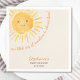 Planen Sie eine Babydusche zum Thema Sonne? Diese niedliche Babydusche sagt "Unser kleiner Sonnenschein ist fast hier" in stilvoller Schrift-Typografie mit einer lächelnden gelben Aquarellsonne auf einem weichen cremefarbenen Hintergrund. Einfach anpassbar. In meinem Laden gibt es passende Teller und Tassen. Original Wasserfarbe © Michele Davies.