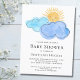 Die Babydusche dieses niedlichen Jungen ist mit einer Postkarte mit Aquarellwolken und einer lächelnden Sonne geschmückt. Einfach anpassbar. Wenn wir unsere Kunstwerke erstellen, werden Sie dieses exakte Bild von anderen Designern nicht finden. Original Wasserfarbe © Michele Davies.