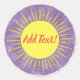 Sonnencreme Aquarellschablone für Babydusche. Maßgeschneiderte Aufkleber für die Dekoration von Party. Gelbe Sonne am lila Himmel. Hinzufügen von Text und Bild zum Anpassen. Thema: Hier kommt der Sohn.