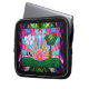 Ein digitales Buntglasdesign im Art-Déco-Stil, das im 20. Jahrhundert beliebt war. Das weithin verwendete Sonnenburstmotiv ist zentral und erhebt sich hinter einer grünen Landschaft, die von einem Baum auf der einen Seite und Wolken und Blume auf der anderen Seite ausgeglichen wird. Geometrische Formen werden verwendet, um die Symmetrie der Szene zu betonen, wobei der Baum und die Wolken aus überlappenden Kreisen bestehen. Verschiedene farbenfrohe Fraktal verleihen der "gläsernen" Textur und dem Interesse. Die Szene ist gerahmt in schwarzen Eisenarbeiten und diamantförmigen Blöcken, mattiert mit dunklen, aber lebendigen Fraktal-Mustern.