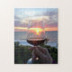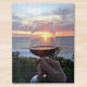 Sage dem Sonnenuntergang und deinen Freunden Beifall! Dieses Puzzle bietet einen Sonnenuntergang an der französischen Küste durch ein Glas Rotwein. Santé