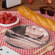 Sonnenuntergang am schwarzen Sandstrand Reynisfjar Pappteller