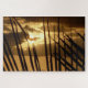 Sonnenuntergang mit Blick durch das Strandrasen. Wunderschöne Golden- und Brauntöne machen dieses Sonnenuntergang-Foto zu einem komplizierten Rätsel, je nach Größe und Stückzahl, die Sie wählen.