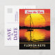 Florida Keys Save the Date Hochzeitseinladung, Reise Postkarte. Einmaliges Boot im Wasser bei Sonnenuntergang.